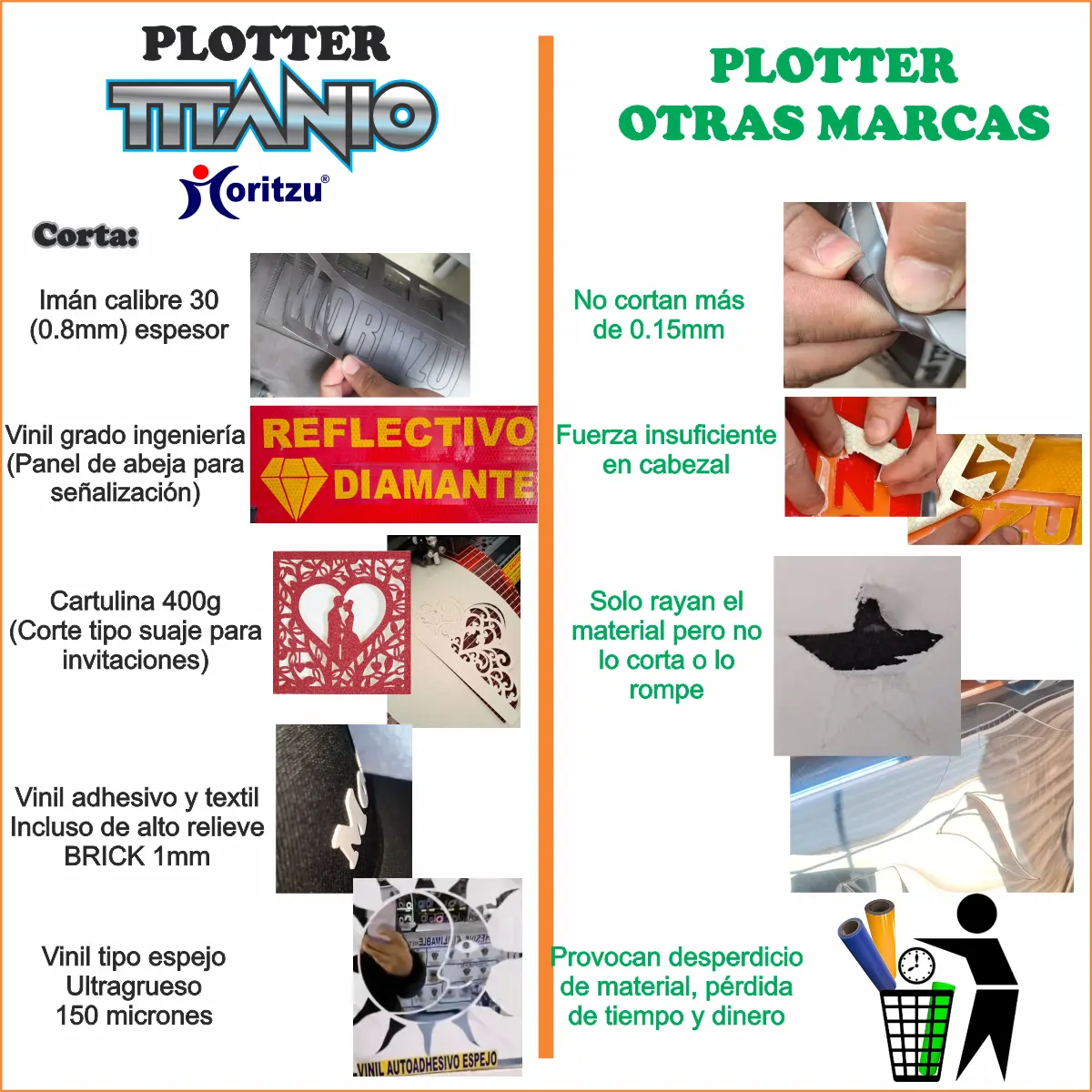 -El plotter corta: vinilo textil, vinilo autoadhesivo, vinilo sublimable, papel, cartulina hasta 300grs. Papel imantado,tela ploteable, vinilo reflectivo, etc.