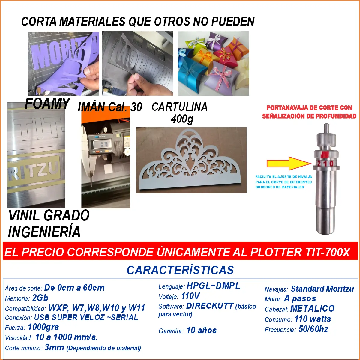 TIT-700X, PLOTTER DE CORTE 60cm TITANIUM TRIPLE DE FUERZA